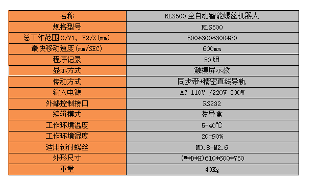 RLS500 全自動(dòng)智能螺絲機(jī)器人
